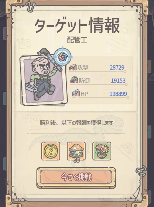 勝利報酬:工程の宝箱+100