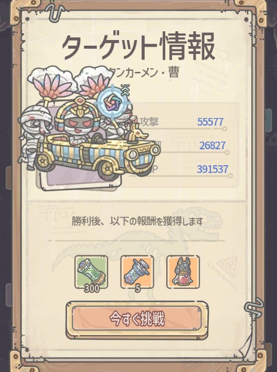 「ただちに応戦する!」をタッチすると、ツタンカーメン・曹と会話のあと、バトルになります。