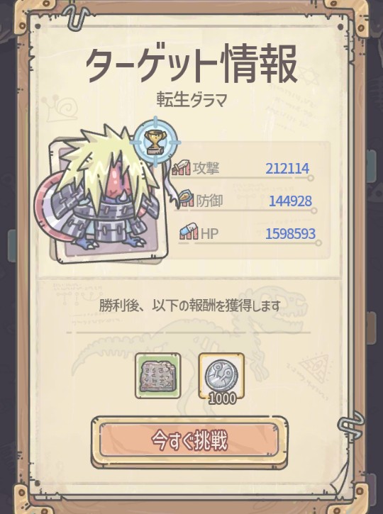 バトル勝利報酬:装備の宝箱+50、黒おたま+20000