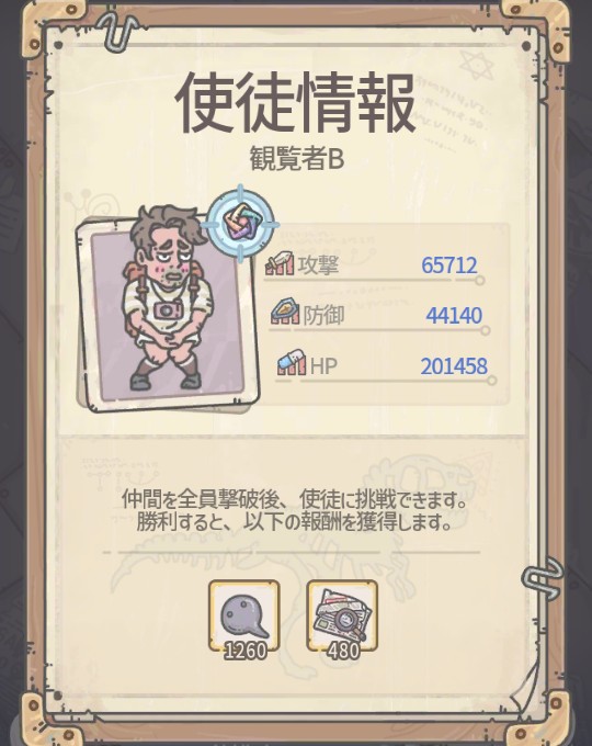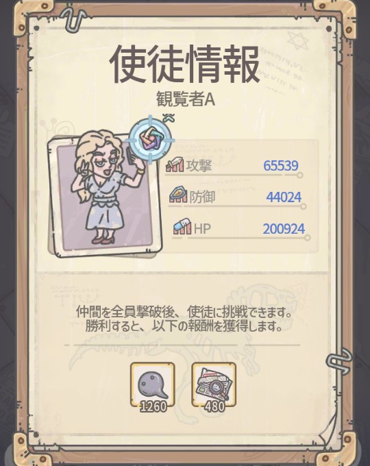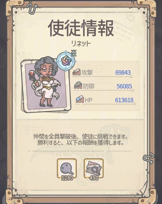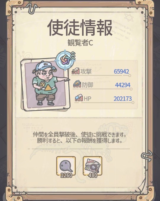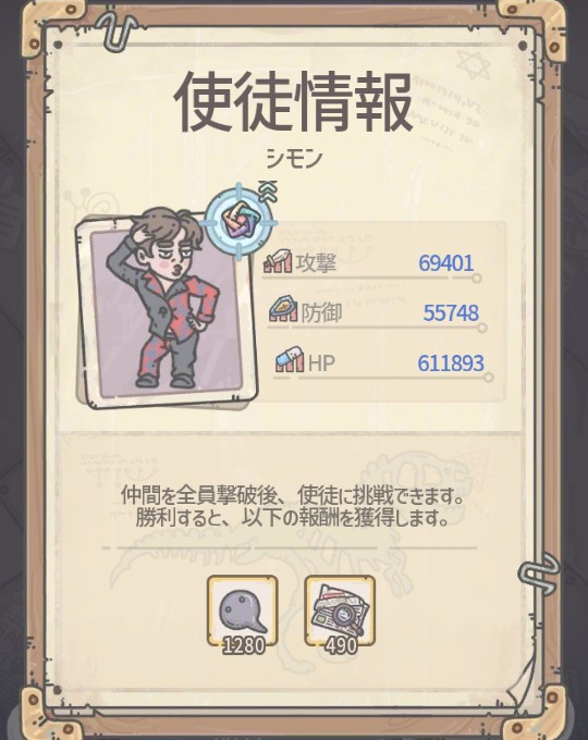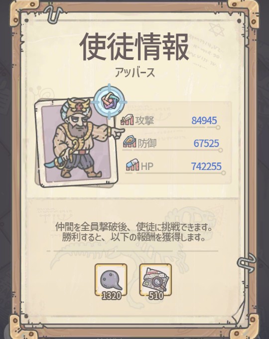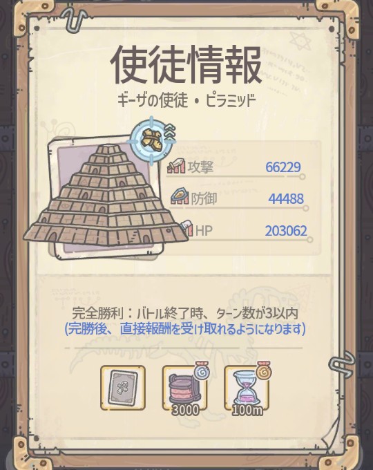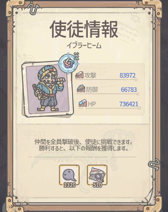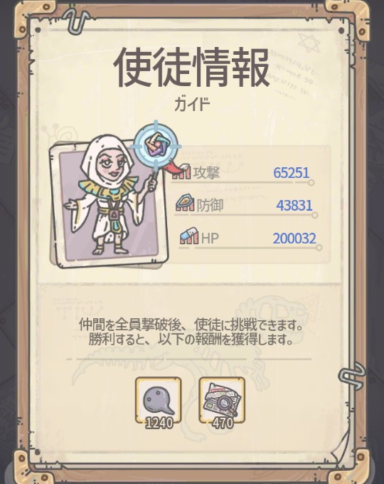 埃及(現代)使徒・配下のステータスと報酬一覧