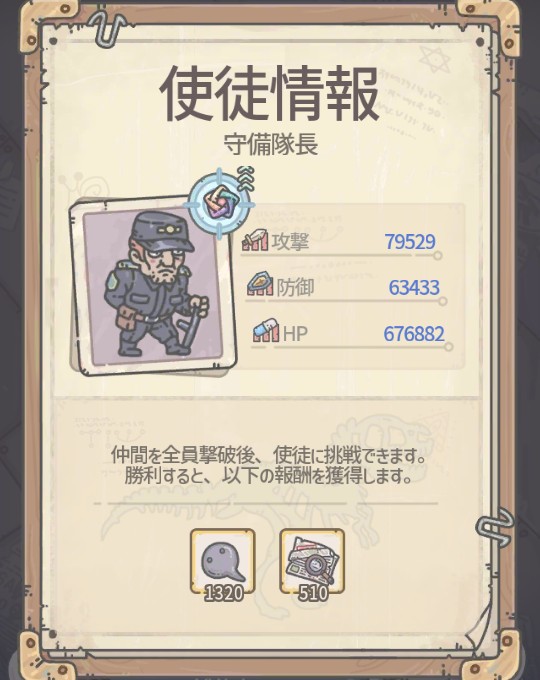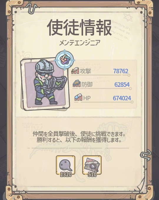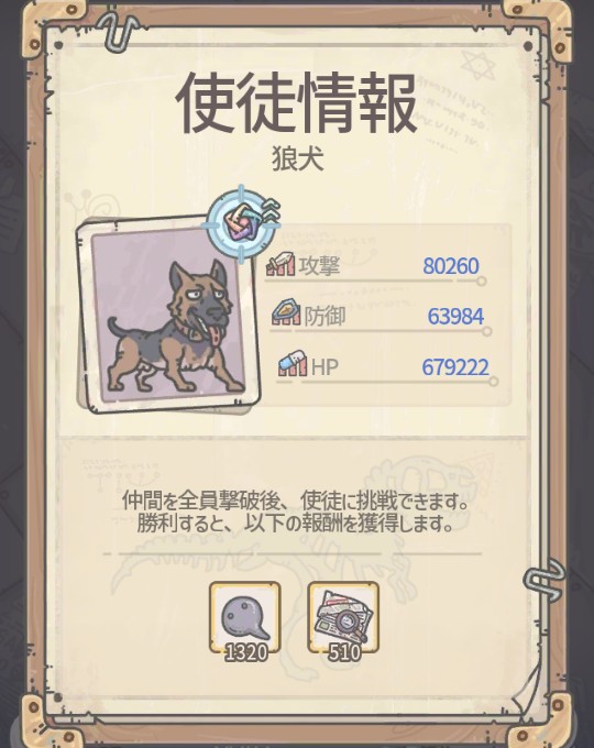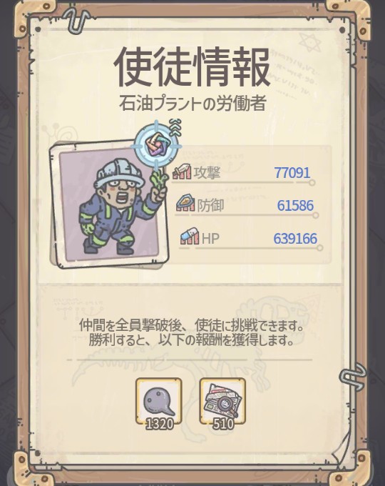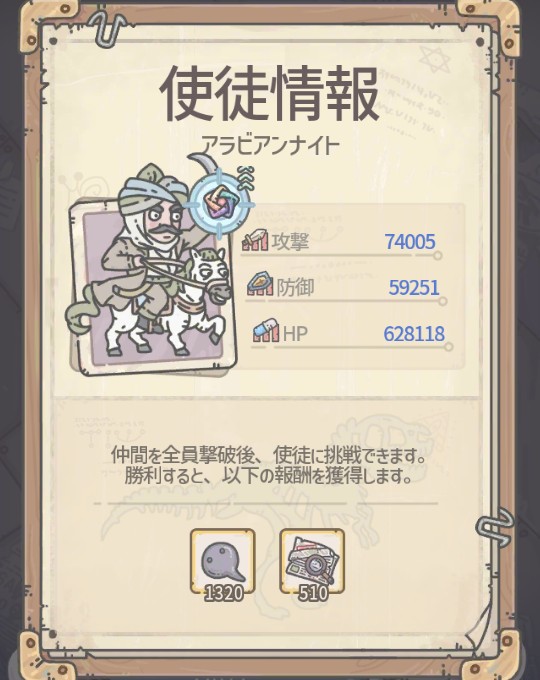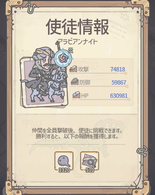 | 使徒 | 砂漠の狐 | 71197 | 58128 | 2766885 | 信仰16100 | 5370000 | 8800000 | ||