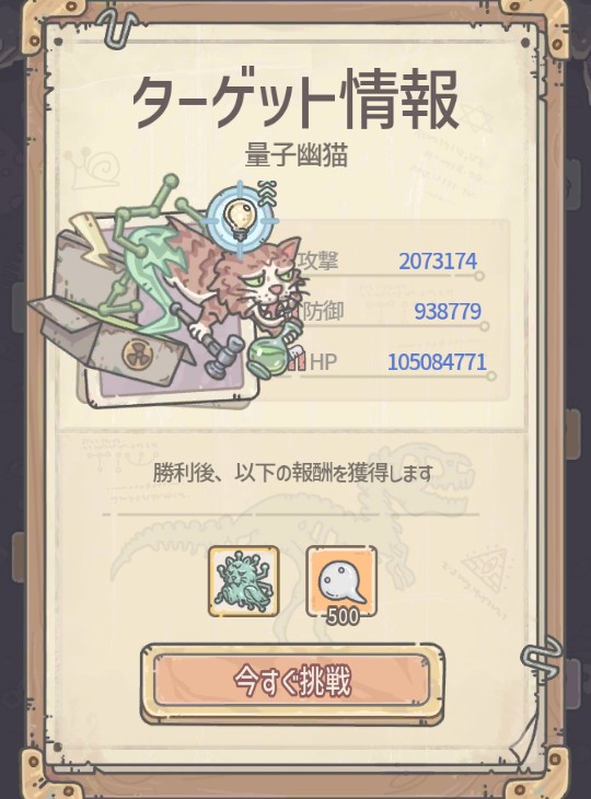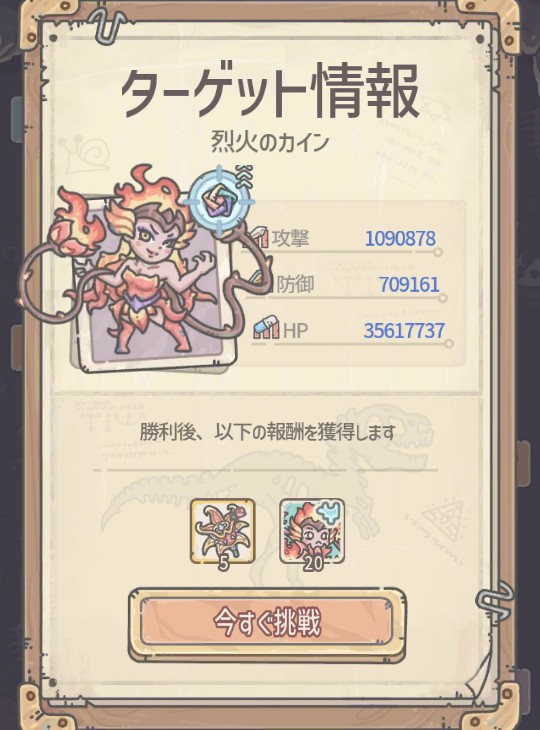 | 勝利報酬 | 古代貨幣+500 奉納加速+8h 日光エサ+1 |