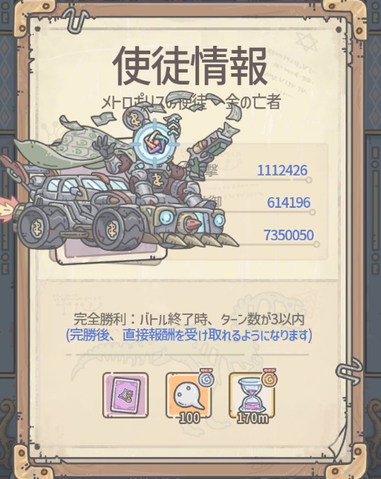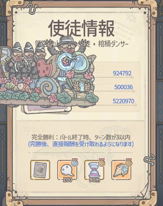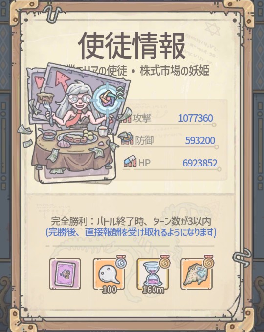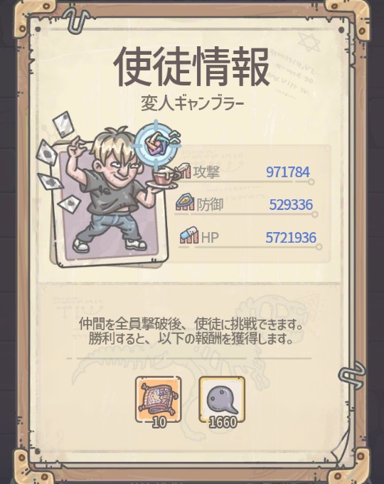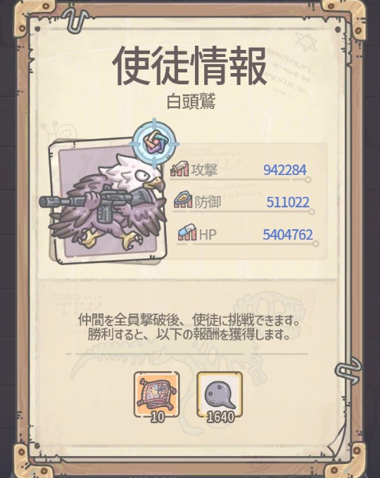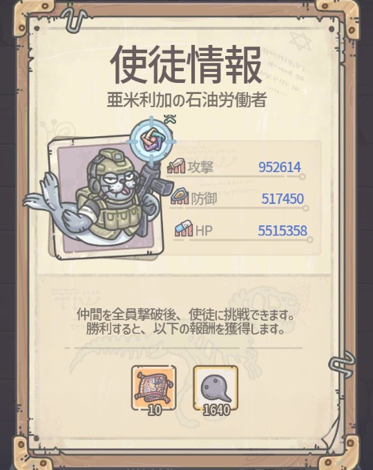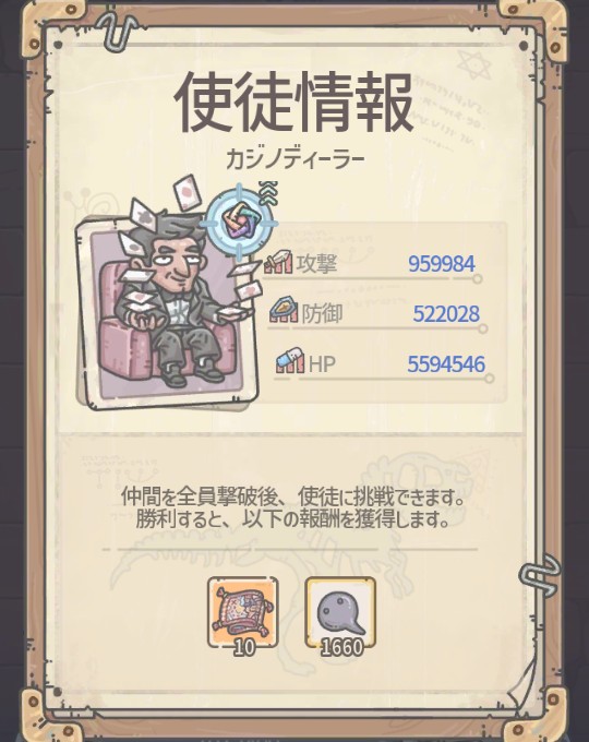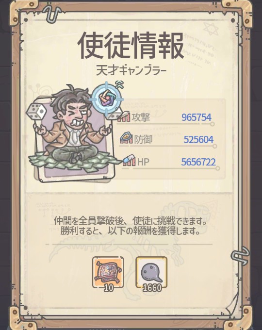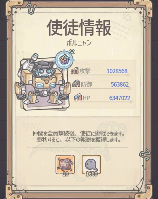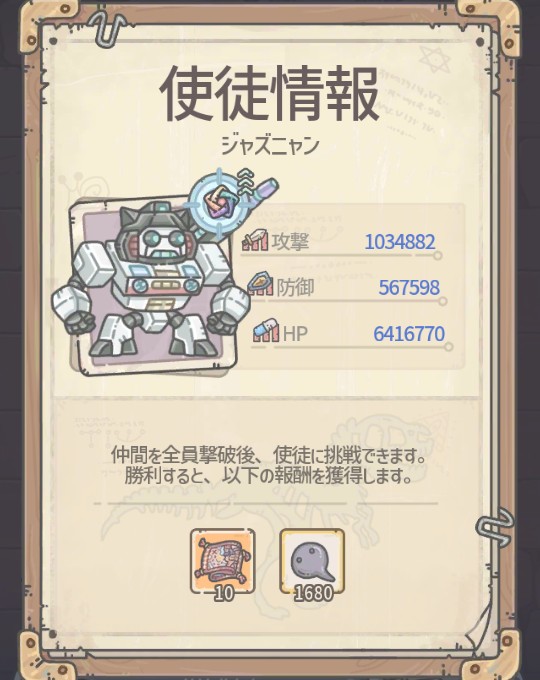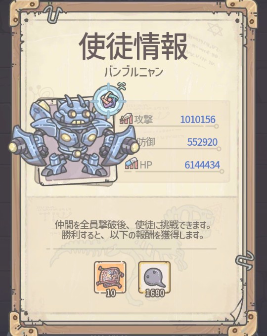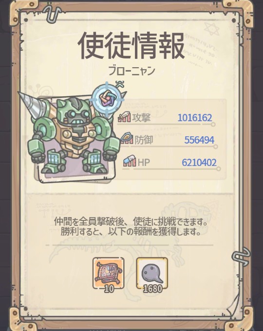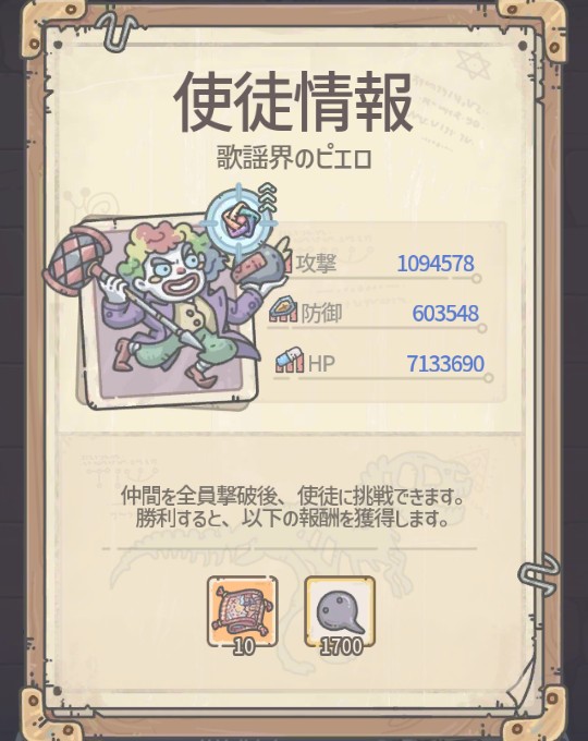 波斯(天空の城2周目)使徒のステータスと報酬一覧